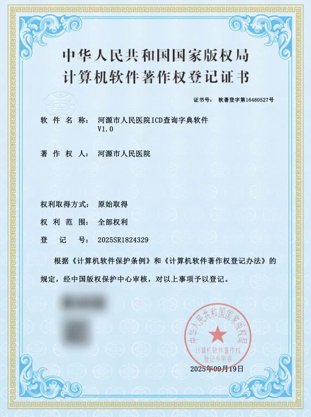 近日,从国家版权局传来振奋人心的喜讯,我院病案统计科陈伟达开发团队自主开发的"ICD查询字典软件"与"ICD编码质控系统"双双获得中华人民共和国国家版权局颁发的《计算机软件著作权登记证书》。这不仅是对我院科研创新能力的国家级权威认可信钰证券,更实现了河源地区医疗行业内此类专业软件著作权"零的突破",标志着我院病案管理信息化、智能化水平迈上了全新台阶。